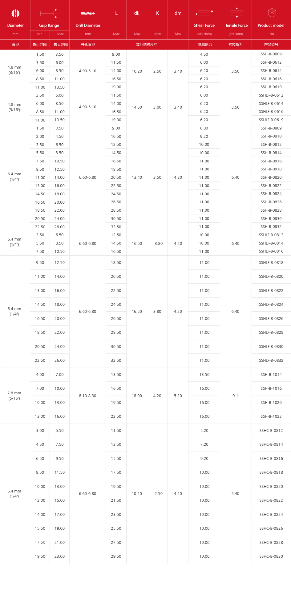 Φ4.8mm - Φ6.4mm |
