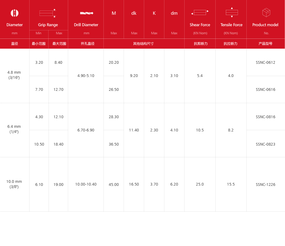內鎖沉頭拉絲鉚釘(全碳鋼)SSNC