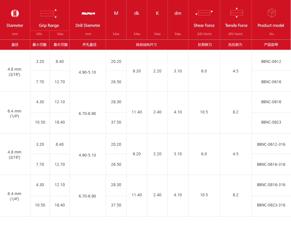 內鎖沉頭拉絲鉚釘(全不銹鋼)BBNC