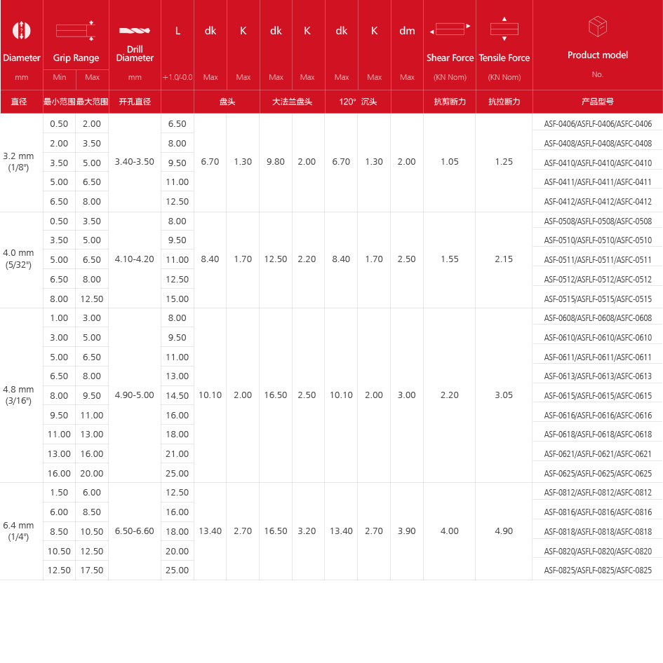 封閉型鉚釘(鋁合金&碳鋼)ASF